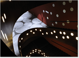 建物を入ってすぐの1階に位置する小劇場は、舞台と客席の位置や形、大きさを自由に組み合わせて、作品の内容に応じた空間を作ることができます。高い天井とゆったりした客席で、じっくりと舞台作品に向かい合える豊かな時間を創出します。
